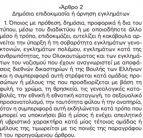 Στο άρθρο αυτό λοιπόν καταγγέλλει τη «βέβηλη πράξη εμπρησμού της Ελληνικής Σημαίας» και παριστάνει τον υπερασπιστή της «Τιμής» της.
