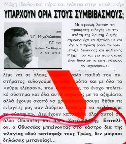 Έγραψε λοιπόν ένα άρθρο στην επίσημη εφημερίδα της Χρυσής Αυγής, με τίτλο «Η Τιμή της Σημαίας και οι άτιμοι» και με κεντρική φωτογραφία με τη γαλανόλευκη να κυματίζει.